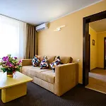 The hotel prides itself on its restaurant that serves both Romanian and international cuisine, which guests can enjoy in the restaurant's interior or on the charming terrace. The on-site bar and lounge further complement the dining experience by offering a selection of drinks in a relaxing atmosphere, ensuring visitors can unwind and enjoy their stay to the fullest.